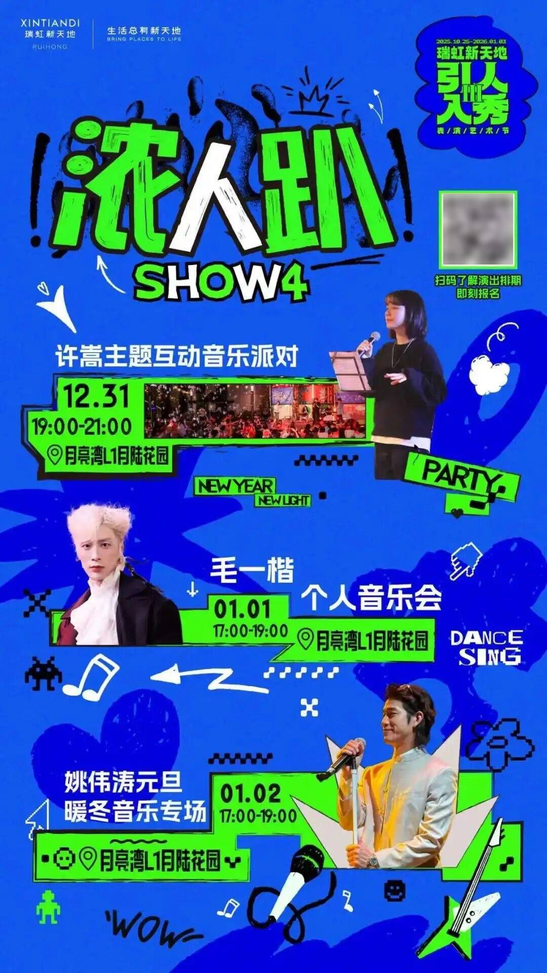 瑞虹新天地月亮湾举办多场“浓人趴”元旦音乐派对,打造“尽兴秀场”,吸引年轻群体参与。