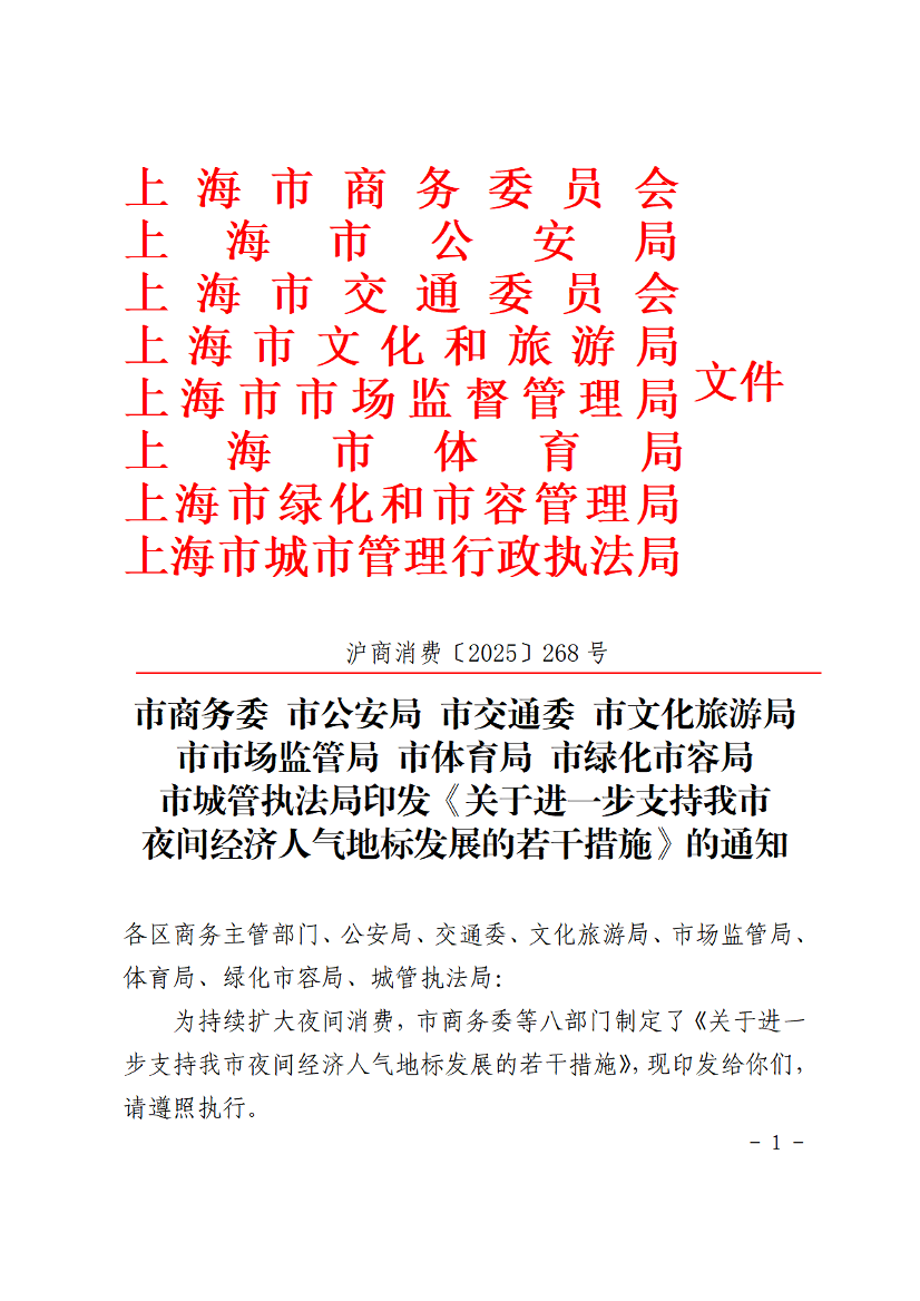 为持续扩大夜间消费,市商务委等八部门制定了《关于进一步支持我市夜间经济人气地标发展的若干措施》,现印发给你们,请遵照执行。