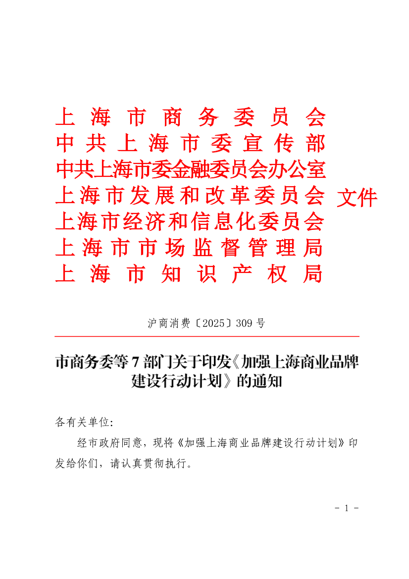 市商务委等7部门关于印发《加强上海商业品牌建设行动计划》的通知