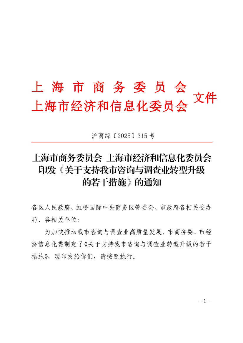 上海市商务委员会 上海市经济和信息化委员会印发《关于支持我市咨询与调查业转型升级的若干措施》的通知