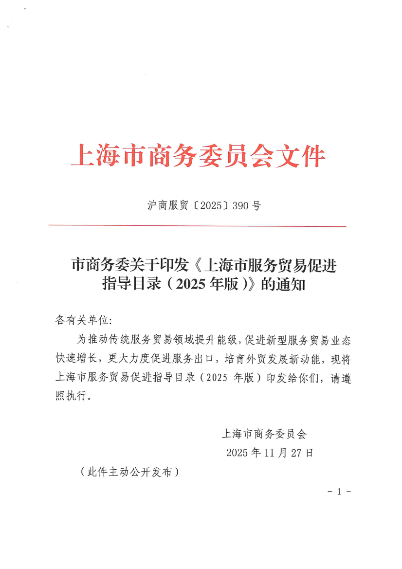 市商务委关于印发《上海市服务贸易促进 指导目录(2025年版)》的通知