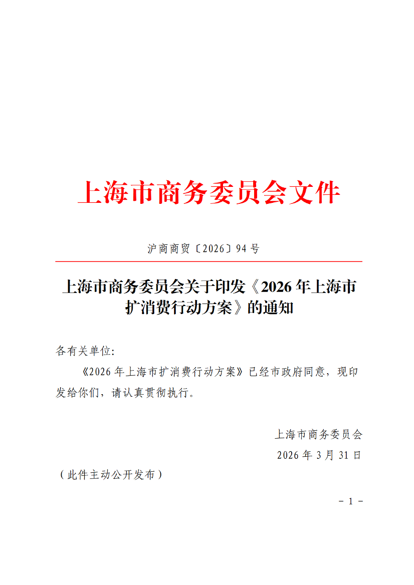 上海市商务委员会关于印发《2026年上海市扩消费行动方案》的通知